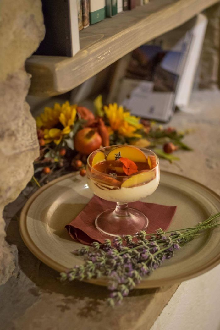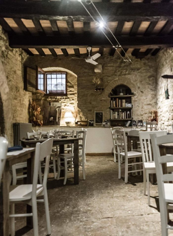 La cucina che lo Chef Diego propone è fortemente ancorata al territorio e all'Umbria in particolare, con rarissime ma straordinarie eccezioni. Paste fatte a mano con farine biologiche, prodotti della terra coltivati biologicamente da aziende agrarie locali, carni da animali allevati all'aperto e dolci fatti quotidianamente dallo Chef. Insomma in tutto e per tutto filiera corta. Un'esperienza di cucina davvero D.O.C